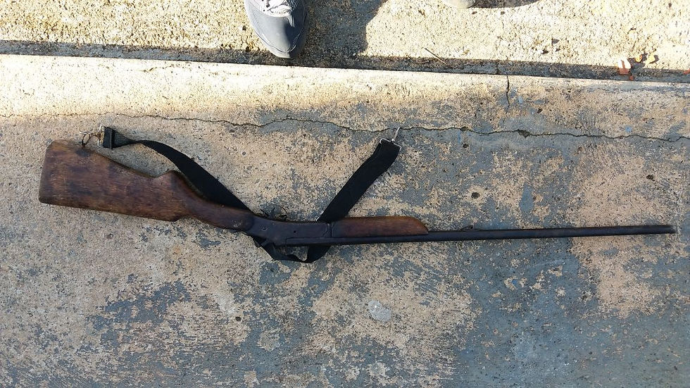 Na residência, a guarnição localizou a arma atrás de um vaso de plantas na área de residência, indagando a mãe da vitima, a mesma afirmou ter jogado a arma no local.