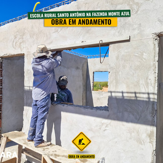 Avança a obra de construção da Escola Rural Santo Antônio na Fazenda Monte Azul